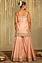 Featuring a rose pink kurta in pure silk chanderi base with sitara and kiran dori embroidery. It is paired with sharara pants having boota work and a silk organza dupatta. The outfit is finished with a contrast banarasi and kinari detailing. Style it with dangler earrings and juttis for weddings or festive occasions.