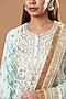Featuring a sky blue kurta in bangalore silk base with tille and pearl embroidery. It is paired with matching gharara pants and a silk organza dupatta.