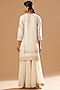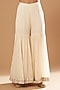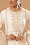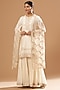 Featuring a white kurta in silk chanderi, georgette, and organza base with french knot and dabka zardosi embroidery. It is paired with matching gharara pants and a dupatta.