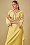 Featuring a yellow kurta in chanderi silk base with kashmiri tilla and parsi gara embroidery, including a zero neck and a slit. Accentuate it with statement jewellery and embellished heels for a festive occasions or wedding ceremony.