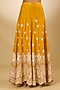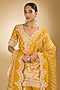 Featuring a yellow short straight kurta in pure silk chanderi base with a deep v-neckline, bell sleeves, tilla, gota and parsi gara embroidery. It is paired with embroidered sharara pants and a silk organza dupatta. Accentuate it with jhumkas and embellished juttis for a wedding ceremony, festive celebration or traditional gathering.