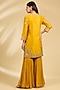 Featuring a yellow kurta in silk chanderi base with gota patti, dabka and zardosi embroidery. It is paired with kalidar sharara pants and a dupatta. Accentuate with statement earrings and heels for a festive occasion.