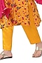Featuring a mustard straight kurta in spandex and cotton base with cheent handblock print and embroidery. It is paired with matching modal satin pants and a pure silk dupatta.