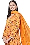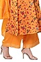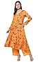 Featuring an orange angrakha kurta in spandex and cotton base with cheent handblock print and hand embroidery. It is paired with matching modal satin palazzo pants and a pure silk dupatta.