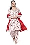 Featuring a white kurta in spandex and cotton base with cheent handblock print and hand embroidery. It is paired with matching pants and a dupatta.