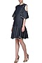 Featuring a blue cold shoulder knee length dress in denim base embellished with denim applique flowers and ruffle detailing.