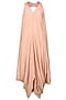 Featuring a peach long dress in lurex line base with a demure cutout at the back and innovative pleating details.