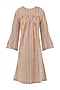 Featuring a peach and blue knee length dress in cotton base with block printing and gathered pleats along the yoke.