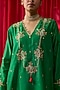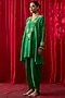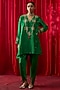 Featuring a green A-line top in silk chanderi base with thread hand embroidery. It is paired with silk satin cowl pants. Accentuate it with kundan polki earrings and heels for festive celebrations or pooja ceremony.