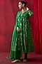 Green Silk Chanderi Printed & Embroidered Gathered Kurta Set