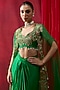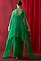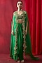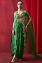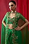 Featuring a green cape in silk organza base with thread hand embroidery. It is paired with a silk chanderi hand embroidered blouse and a silk satin draped skirt. Accentuate it with kundan polki earrings and heels for festive celebrations or mehendi ceremony.