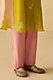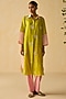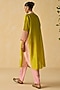 Featuring a lime green tunic in silk chanderi base with mirror and thread embroidery. It is paired with cotton silk pants and a slip. Accentuate it with statement jewellery and heels for a festive look.