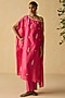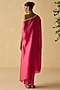 Pink Silk Chanderi Embroidered Off-Shoulder Kaftan Set