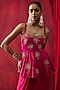 Featuring a pink peplum top in silk chanderi base with thread hand embroidery. It is paired with a silk satin draped skirt. Accentuate it with zircon earrings and heels for festive celebrations or sangeet ceremony.
