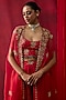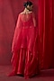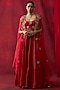 Featuring a red cape in silk organza base with thread hand embroidery. It is paired with a silk chanderi thread hand embroidered blouse and silk chanderi sharara pants. Accentuate it with kundan polki jewellery and heels for festive celebrations or sangeet ceremony.
