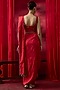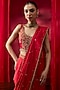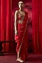 Featuring a red draped saree in silk base with hand embroidery. It is paired with a silk chanderi thread embroidered sleeveless blouse. Accentuate it with kundan polki jewellery and heels for festive celebrations or sangeet ceremony.