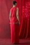 Featuring a red jacket in silk chanderi base with thread hand embroidery and pearl tassels detail. It is paired with a silk satin draped skirt. Accentuate it with kundan polki jewellery and heels for festive celebrations or sangeet ceremony.