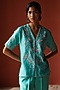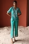 Featuring a turquoise front open cape in silk chanderi base with thread and mirror embroidery. It is paired with wide-legged pants. Accessorise with statement jewellery and heels for casual wear.