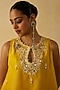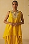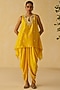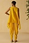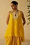 Featuring a yellow short kurta in silk chanderi base with thread and mirror embroidery. It is paired with dola silk pants. Accentuate the it with stud earrings, embellished heels and a clutch for festive occasions.