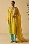 Yellow Silk Chanderi Thread Embroidered Kurta Set
