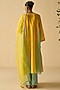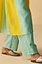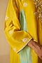 Featuring a yellow kurta in silk chanderi base with mirror and thread embroidery. It is paired with light blue pants, a silk organza dupatta and a slip. Accentuate it with statement earrings and block heels for festive occasions.