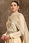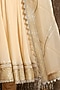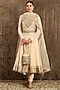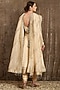 Featuring a beige anarkali in georgette and silk chanderi base with gota, badla machine embroidery, including hyderabadi micro pearls. It is paired with matching churidar pants, a silk organza dupatta and a belt.