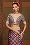 Featuring a dark purple sarees in chanderi base with with abstract gota, dori and badla work. It is paired with a silk chanderi blouse. Style it with block heels and dangler earrings for festive occasions.