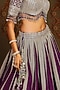 Featuring a dark purple kalidar lehenga in silk chanderi base with gota, dori and badla embroidery. It is paired with a blouse and a net dupatta. Accentuate it with statement jewellery and heels for a bridal look.