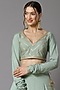 Featuring a dust green lehenga in cotton chanderi base. It is paired with a matching silk chanderi blouse and an organza dupatta having zari scalping detailings.