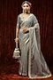 Featuring a dusty blue saree in silk organza base with pearl, badla and kasab work. It is paired with a contrasting cobalt blue silk chanderi blouse having gota, pearl and crystal drop detailing.