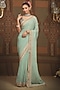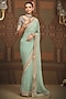 Dusty Light Turquoise Georgette Gota & Badla Embroidered Saree Set