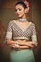 Featuring a dusty light turquoise saree in georgette base with gota, dori and badla work. It is paired with a maroon silk chanderi blouse having a v-neckline. Enhance this designer saree set with block heels and polki jewellery to infuse a touch of glamour and elegance into your ensemble.