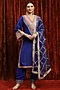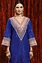 Featuring an electric blue and rani kurta in cotton lurex base with gota, dori and badla embellishment, including a v-neckline. It is paired with silk chanderi pants and a net dupatta. Accentuate it with statement jewellery and heels for weddings or festive occasions.