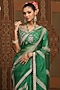 Featuring an emerald green leheriya saree in silk organza base with gota, dori and badla work. It is paired with a silk chanderi blouse having a paan neckline. Enhance this designer saree set with block heels and polki jewellery to infuse a touch of glamour and elegance into your ensemble.