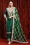 Featuring a green and blue kurta in cotton lurex base with gota, dori and badla work, including a v-neckline. It is paired with silk chanderi pants and a net dupatta. Accentuate it with statement jewellery and heels for weddings or festive occasions.