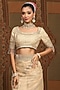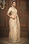 Featuring an ivory leheriya saree in silk organza base with gota, dori and badla work. It is paired with a silk chanderi blouse having a round neckline. Enhance this designer saree set with block heels and polki jewellery to infuse a touch of glamour and elegance into your ensemble.