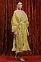 Lemon Green & Purple Lurex Cotton Badla Work Kaftan With Belt