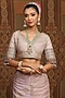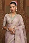 Featuring a light purple leheriya saree in silk organza base with gota, dori and badla work. It is paired with a silk chanderi blouse having a v-neckline. Enhance this designer saree set with block heels and polki jewellery to infuse a touch of glamour and elegance into your ensemble.