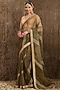 Featuring a mehendi green saree in organza base with badla, kasab, hyderabadi micro pearls, gota and machine embroidery. It is paired with a peach silk chanderi blouse having rose gold detailing. Accentuate it with statement jewellery and heels for a mehendi or engagement ceremony.