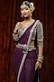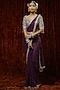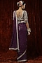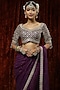Featuring a purple saree in georgette base with badla and kasab work. It is paired with a silk chanderi blouse having kasab, pearls and crystal drop detailing, including a belt.