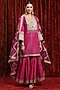 Featuring a rani pink and maroon kurta in cotton shimmer base with dori, badla and gota work. It is paired with silk chanderi sharara pants and a net dupatta. Accentuate it with statement jewellery and heels for festive occasions.