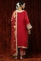 Featuring a rani red kurta in silk chanderi base with pearls, badla and kasab work. It is paired with matching pants and a georgette dupatta having gota, dori and crystal drop detailing.