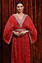 Featuring a red, rani pink and purple crinkled kaftan in lurex cotton base with fine gota, dori, including badla work. It is paired with a belt. Accentuate it with statement jewellery and heels for a complete look.