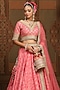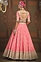 Featuring a rouge pink lehenga in cotton shimmer chanderi base with gota, dori and badla work. It is paired with a silk chanderi blouse having a v-neckline and a net dupatta. Accentuate this designer lehenga set with statement jewellery and heels for a wedding or engagement ceremony.