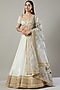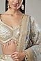 Featuring a silver lehenga in shimmer chanderi base with gota, dori, tassels, and badla machine embroidery. It is paired with a matching blouse and a net dupatta.
