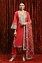 Featuring a red kurta in cotton shimmer base with dori, badla and gota work. It is paired with cotton and silk chanderi pants and a net dupatta. Accentuate it with statement jewellery and heels for festive occasions.