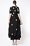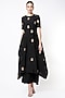 Featuring a black asymmetrical tunic in silk base with zardosi embroidery. It is paired with matching frilled palazzo pants.
