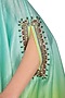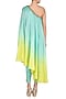 Featuring a blue ombre one shouldered kurta in silk chanderi base with kundan and thread hand embroidery. It is paired with matching pants in satin lycra base.