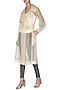 Featuring a lemon yellow sheer trench coat in silk organza base with embellishments on front and cuffs. It is paired with lycra jersey bustier top.