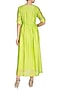 Featuring a neon green gathered midi dress in silk chanderi base with booti hand embroidery.